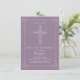 Esta petição (4,5"x6,25") elegante, simples e clássico convite da Primeira Comunhão apresenta uma cruz branca ilustrada com uma fronteira detalhada correspondente. O exemplo é mostrado em roxo, mas a cor de fundo pode ser personalizada de acordo com o seu gosto. Perfeito para o seu sacramento religioso especial, o texto também pode ser personalizado para o seu evento.