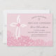 Este convite bonito e feminino de primeira comunhão sagrada pode ser personalizado para a ocasião religiosa especial de sua garota. o texto e as cores de fundo podem ser mudados para seu gosto. Apresenta uma cruz na moda, bem como flores de hydrangea rosa. A maneira perfeita de convidar convidados para compartilhar o dia importante.