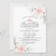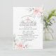 Design floral rústico simplesmente elegante em buquê de aquarela (cor d'água) verde pastel, cor-de-rosa-pincel, rosa, rosas de flores brancas/flores de cereja em fundo branco e letras de cinza escuras. Delicar os convites da Primeira Comunhão para a menina. Cruz com diamante falso no meio.