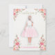 Bonito convite personalizado de "Primeira Comunhão" floral. Possui belos elementos florais em branco, pêssego e rosa, uma adorável parte de trás de uma garotinha com miçangas rosárias, vestido de cetim e coroa de cabelo e véu mole. Mude o cabelo para uma cor diferente, com as minhas outras sagradas raparigas da comunhão a personalizarem. Este é para uma cabeça vermelha ou uma garota cabeleira. Todos os textos podem ser alterados.