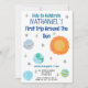 Este convite para o Primeiro Ano em Torno do Sol é uma adição fofa ao tema de sol, estrelas e planetas para o 1º aniversário. Ele combina com a outra decoração de festa galáctica, basta procurar por "primeira viagem" na minha loja para encontrar os outros itens. Este design apresenta um sol pintado à mão, estrelas e planetas em aquarela na frente e um verso em aquarela azul. Também está disponível em uma versão com rosa.