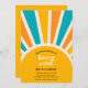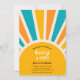 Convite de aniversário com uma armação com raios solares. Personalize com suas informações para o aniversariante. Clique em "clicar para personalizar mais" para alterar o estilo, o tamanho ou a cor da fonte.
