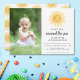 Você está planejando uma primeira festa de aniversário com tema solar? Este belo convite é decorado com uma aquarela amarela sorrindo sol, tipografia com script de na moda e um padrão solar no verso. Facilmente personalizável com sua foto e detalhes. Original Watercolor © Michele Davies.