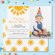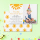 Você está planejando uma primeira festa de aniversário com tema solar? Este belo convite é decorado com uma aquarela amarela sol, tipografia com script de na moda e um padrão solar no verso. Facilmente personalizável com sua foto e detalhes. Original Watercolor © Michele Davies.