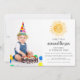Você está planejando uma primeira festa de aniversário com tema solar? Este belo convite é decorado com uma aquarela amarela sorrindo sol, tipografia com script de na moda e um padrão solar no verso. Facilmente personalizável com sua foto e detalhes. Original Watercolor © Michele Davies.