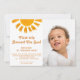Convide a família e os amigos para a sua primeira festa de aniversário com este belo Convite para primeiros aniversarios. É decorado com um sol de aquarela e diz "Primeira viagem ao redor do Sol!" Facilmente personalizável. Substitua a foto por uma de suas. Perfeito para o primeiro convite de aniversário de um menino ou de uma menina.