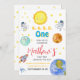 Adorável espaço exterior recebeu o primeiro convite de aniversário com um belo sol, planetas, foguete, astronauta e design de contagem regressiva. Perfeito por comemorar a sua primeira viagem ao sol com um tema divertido e colorido de festas cósmicas.