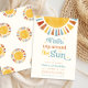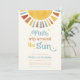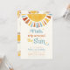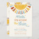 Este adorável convite de vassoura apresenta um sol de aquarela, colocado contra um fundo branco suave. As cores muda de amarelo, laranja e azul combinadas com a fonte retrorativa adicionam uma sensação encantadora de 70 s. Totalmente personalizável com seus detalhes, este convite é perfeito para comemorar o marco do seu filho.