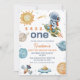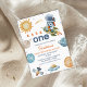 Watercolor First Trip Around the Sun primeiro aniversario Invitation Cute Primeiro convite para o primeiro aniversário para um bebê que possui um astronauta giro andar numa nave espacial, várias plantas, sol e estrelas. Esta primeira viagem ao redor do convite de primeiro aniversario solar é ideal para um espaço tematizado de primeiro aniversário.