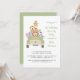 Este convite de aniversário de convite sem diferença de gênero ilustra os animais do zoológico bebê (leão, elefante, zebra, macaco e girafa) amontoados em um veículo safari e "primeiro aniversario Drive By Party" e o nome da criança em um roteiro verde do exército. Você pode personalizar facilmente os detalhes da festa, como por exemplo, onde e quando dirigir, refrescar e oferecer áreas, qualquer distanciamento social ou outras precauções de segurança, se a parte continuará on-line mais tarde para soltar presentes e um contato para obter mais informações. Pode também indicar o texto do veículo (definido como selvagem) e a data da festa na chapa de matrícula ou deixar vazio.
