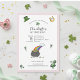Este convite para o primeiro aniversario do Dia de Patrick, cor-de-rosa e verde, apresenta ilustrações desenhadas à mão de um arco-íris e pote de ouro com moedas de ouro de shamrock, um chapéu de duende, um trevo verde, ferradura de ouro e adoráveis corações verdes. O verso apresenta um belo padrão com estes mesmos elementos, e uma bênção irlandesa, "Desejando-lhe sorte e alegria infinitas". Todo texto é editável. Basta clicar em "Personalizar" e seguir os prompts de texto para torná-lo exclusivamente seu.