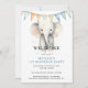 Um lindo elefante de aquarela "selvagem um", convite de aniversário com bandeira festeira.