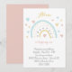Convites Primeiro aniversario azul-rosa do arco-íris de aqu