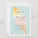 Este cartão de convite para primeiros aniversarios de um rapaz/neutro em sexo bonito apresenta um sorvete sobre um fundo azul claro enquadrado por uma borda branca. O verso apresenta um fundo branco com faixas azuis claras. Personalize-o para as suas necessidades. Você pode encontrar mais produtos para urso polar na minha loja.