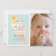Este cartão de convite para fotos de primeiro aniversario de um garoto/neutro em sexo bonito apresenta um sorvete sobre um fundo azul claro enquadrado por uma borda branca. O verso apresenta um fundo branco com faixas azuis claras. Personalize-o para as suas necessidades. Você pode encontrar mais produtos para urso polar na minha loja.