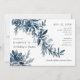 Primeiro aniversario elegante e convite para o batismo, com flores azuis de índigo e folhas em aquarela. Florais pintados com contornos. Uma placa exclusiva com um design horizontal.