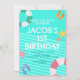 Um convite para primeiro aniversario de um garoto de verão bonito. O tema perfeito para a primeira festa de aniversário do seu filho na temporada de verão. "UM" pode ser editado de acordo com um segundo aniversário ou qualquer idade.