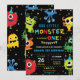 Cartões de convite para pequenos monstros vibrantes, com monstros coloridos e bonitos amigáveis. Personalize este incrível convite do Monster com o nome, a idade e os detalhes da festa do seu filho de forma fácil e rápida, basta pressionar o botão personalizar para reorganizar e formatar o estilo e o posicionamento do texto. Inclui um design de convite correspondente.Altere a cor de fundo para qualquer cor que você queira! c) O Feliz Cat Studio