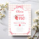Bonita, Doce, Um Convite Para primeiro aniversario De Garota De Morango. Celebre o seu primeiro aniversário do Sweet One com o nosso querido Convite para primeiro aniversario da Strawberry Girl! Esta doce design mostra um morango giro vestindo um arco rosa coquetel num charmoso fundo de gingham vermelho e branco. Perfeito para a primeira festa de aniversário da sua menina. Peça agora e prepare-se para espalhar a doçura com este convite encantador e único! Acessórios correspondentes disponíveis.