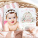Celebre o marco especial da sua menina com este belo convite para o primeiro aniversario. Apresentando uma elegante composição de uma abóbora bonito de aquarela adornada com flores rosadas e verde. Clique no botão "personalizar mais" se quiser reorganizar e formatar o estilo e a posição do texto. Vem com uma faixa cor-de-rosa e dourada correspondente na parte de trás.