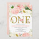 Convites primeiro aniversario, branco cor-de-rosa elegante
