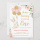 Convite para o aniversário da Bunny, Convidado para o primeiro aniversario da Coelhinha, Convites Dourados cor-de-rosa, Primavera