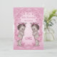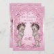 Os convites de festas cor-de-rosa elegantes do primeiro aniversario da princesa do vintage das meninas gêmeas com uma ilustração bonita do vintage de dois bonitos e os bebés adoráveis com as coroas cor-de-rosa à moda da princesa, os deslizadores doces do coelho de coelho, as fraldas cor-de-rosa com plissados e arcos cor-de-rosa em seu cabelo em um fundo cor-de-rosa bonito com um elegante, ornamentado rodam e florescem a beira. O chique, na moda, glamoroso, feminino, divertimento, primeira festa de aniversário da menina gêmea disponível elegante convida para seu partido temático da princesa dos gêmeos. O dobro tomou partido impressão. Se você precisa algum auxílio que personaliza seu produto me contacta por favor através de minha loja e eu estarei feliz ajudar. Artwork©delightful-doodles.com original. NOTE POR FAVOR: - Todos os convites em Zazzle têm imagens impressas do plano. Eu tenho presentes de harmonização em minha loja.