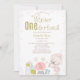 Celebre o seu primeiro aniversário em estilo com estes Incêndios de primeiro aniversario da Floresta de inverno! Personalize com suas informações de evento para criar um cartão gentil que seus amigos e familiares certamente amarão. Projetado com flocos de neve cor-de-rosa e dourados, fontes modernas e um baCK com falso ouro.