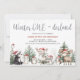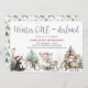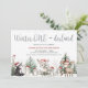 Winter Woodland Onederland primeiro aniversario Convite para a época de Natal Convite para primeiro aniversario com alguns animais florestais numa paisagem florestal de pinheiro. Este primeiro convite de aniversário de uma terra de inverno também apresenta um falso título de prata.