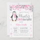Convite do primeiro aniversario da menina do pinguim de Onederland do inverno. Floco de neve cor-de-rosa e cinzento. Convite de aniversário da menina. Feriado de inverno Bday. Fundo branco. Para uma personalização mais adicional, clique por favor "personalizam-no" botão e usam-nos nossa ferramenta de design para alterar este modelo.