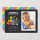 Celebre o seu primeiro aniversário com este charmoso convite ao estilo do quadro-pessoal que inclui os favoritos da Sesame Street Elmo, Big Bird e o Monstro do Biscoito. O design lúdico inclui espaço para uma foto pessoal, balões coloridos e sotaques alegres, todos colocados contra um fundo de quadro chantagônico rústico. Personalizável com os detalhes do seu partido, este convite vibrante é a forma perfeita de dar o tom para uma celebração de marco com tema Sesame Street.