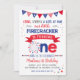 4 de julho primeiro aniversario Convite Vermelho Branco e Azul Firecracker Estrelas Patrióticas Strips