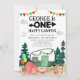Convite para primeiros aniversarios de acampamento de floresta feliz da Camper Feliz ONE