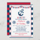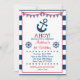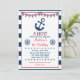 Este adorável convite apresenta as nossas ilustrações de âncora e coração em azul marinho e vermelho com uma fronteira de faixa náutica.