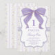 Mande a sonhadora elegância do estilo de coquete romântico vintage com este primeiro convite de aniversário do 'Rico Um'." Projetada com um arco de lavanda vibrante, um padrão delicado de faixa de rosa e detalhes de local seguro, esta placa irradia o charme de vintagem e a sofisticação de coquete. Perfeito para uma celebração de chique, menina, ou jardim de casa, é a melhor escolha para pais que adoram estética de partido romântica e inspirada na herança.