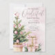 Convites primeiro aniversario de Árvore de Natal rosa com a