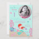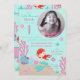 Pequena carta de convite de aniversário da sereia com criaturas submarinas.
