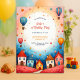 Celebre o seu aniversário com este encantador Convite de primeiro aniversario do Balão de Ar Quente. Apresentando uma vila balnear e balões coloridos de ar quente soprando num céu sonhador, esta design brincalhona traz magia de conto de fadas ao seu dia especial. Personalize todos os detalhes para se adequar à sua comemoração e crie um guardião que você vai tesourar para sempre!