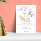 Festa de primeiro aniversario dos Balões de Fotografias de Um Bobo Bonito. Personalize facilmente o texto para seus detalhes. Um doce ganso de festa, bolo e balões gráfico estabelece a cena. Substitua a foto da amostra no verso por sua.