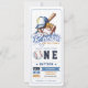 Bata em casa com este primeiro convite de aniversário para o seu travesseiro! Projetado na forma de um ingresso esportivo, este convite divertido e esportivo apresenta uma manchete divertida do "Rookie of the Year" e ilustrações com aquarelas de uma luva, taco, boné e bola. Perfeito para um bebê virar um, este convite dá o tom para uma festa de aniversário de beisebol, uma celebração temática de novatos, ou uma festa desportiva de todas as estrelas. Ideal para os pais planejarem o primeiro aniversario de um menino com um tema de baseball, este cartão personalizável é fácil de personalizar e faz uma manutenção memorável.