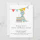 Convite Para primeiro aniversario De Bolo De Dinossauro Bonito. O cabeçalho é grande em na moda lowercase com os detalhes abaixo. Personalize facilmente o texto. Um azul de pó de coordenação está atrás