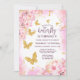Convites Primeiro aniversario de borboleta Dourada, cor-de-