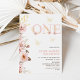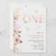Dourada rosa Borboletas Florais Chic primeiro aniversario Convite para o primeiro convite de aniversário de uma menina floral Bonito apresentando um arranjo floral chic no lado, grande palavra decorada e borboletas de ouro.