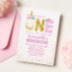 Primeiro aniversario de Confetti Unicorn, Dourado e rosa, bonito. Clique no botão "Personalizar" para personalização adicional deste modelo. Você poderá modificar todo o texto, incluindo o estilo, as cores e os tamanhos, e alterar a imagem.