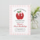 Apple Coquette Primeiro aniversário com arco rosa e gingham rosa.