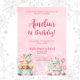 Celebrar a doce aniversariante com este festivo Natal cor-de-rosa de inverno Cupcake de Onederland Convite! Todo o texto pode ser alterado para ajustado do seu evento! Imagens apresentam cupcakes pastéis, doces com fundo de neve brilhante no inverno.