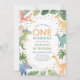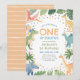 Convide amigos e família para celebrar o seu primeiro aniversario com este convite temático de dinossauro.