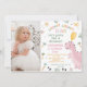 Foto cor-de-rosa Chomp Roar Dinossauro primeiro aniversario Convite Foto Dinossauro Foto dinossauro com tema convite de aniversário apresentando um grande dinossauro rosa, um balão amarelo, sol, folhagem e árvores. Esta festa de vamos ruidosa, de estômago, como um convite para o aniversário de dinossauros pode ser usada por várias idades, mas é ideal para o primeiro aniversário de um dino de uma menina. A foto aparece no lado direito frontal.