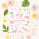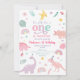 Convites Primeiro aniversario de Dinossauro Rosa Girassol