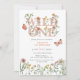 Este elegante convite de primeiro aniversário tem flores silvestres e texto cor-de-rosa. A parte de trás é uma estrutura de padrão de flor silvestre rosa e correspondente com uma foto grande. As borboletas acrescentadas lhe dão um toque extra feminino.
